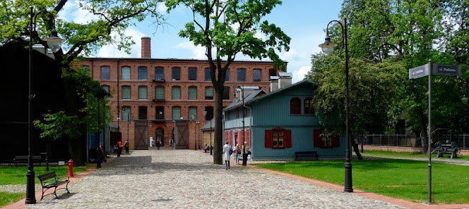 za bramą widzimy Muzeum Włókiennictwa.